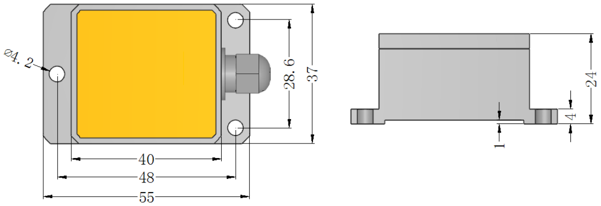Por defecto, la instalación se realiza horizontalmente hacia arriba: durante la instalación, la superficie de montaje del sensor debe mantenerse paralela a la superficie del objetivo a medir; consulte el diagrama de rotación para conocer el método de instalación. Si se requieren otros métodos de instalación, consulte la descripción esquemática de "Método de instalación del producto" e indíquelo al realizar el pedido.