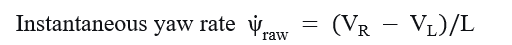 (1) Calculate instantaneous yaw rate based on the linear velocity of the left and right wheels