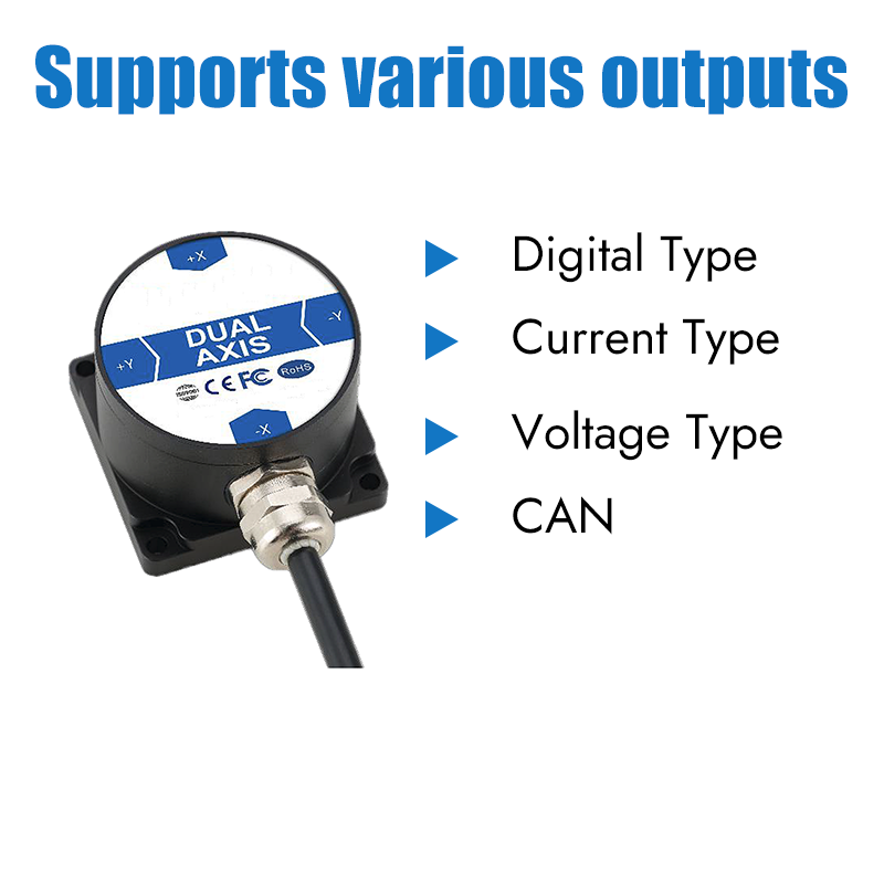 La serie T7-C es una nueva generación de impresoras digitales de pequeño volumen. sensores de inclinación MEMS Lanzado por Micro-Magic Inc., una empresa de alta tecnología, este dispositivo incorpora una unidad de inclinación gravitatoria terrestre de doble canal que mide la aceleración dinámica de la gravedad y la convierte en cambios de ángulo de inclinación. Esto permite medir los ángulos de balanceo y cabeceo de la salida del sensor con respecto al plano horizontal. Ofrece modos de salida RS232, RS485, RS422, Modbus e interfaz TTL (opcional). Gracias al sistema de control MCU integrado, la linealidad de la salida del sensor se corrige dos veces, compensando así la disminución de precisión causada por una corrección insuficiente en sensores analógicos.